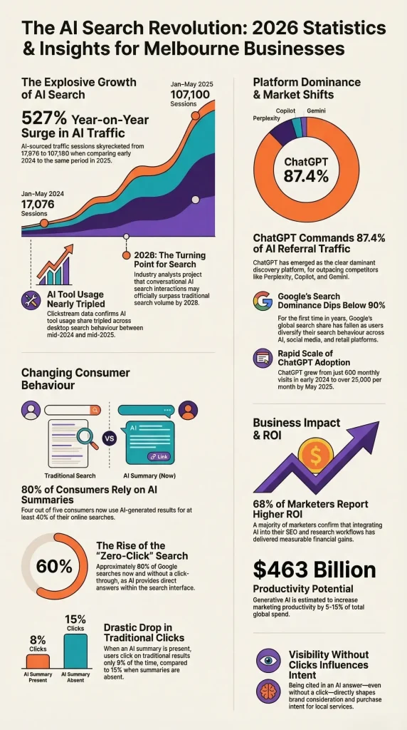 The statistics above point in a consistent direction: AI search is not a future concern — it is already shaping how Melbourne consumers discover businesses.