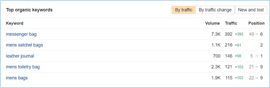 We understand that for ecommerce businesses, improved rankings are only meaningful if they translate into increased sales. That’s why we’re excited to share another success story that demonstrates the direct impact of our SEO efforts on a client’s Shopify store.Messenger Bag: Moved from position 49 to position 6, resulting in a traffic increase of 392.Mens Satchel Bags: Achieved position 2, driving 216 additional visitors.Leather Journal: Reached position 1, increasing traffic by 98.